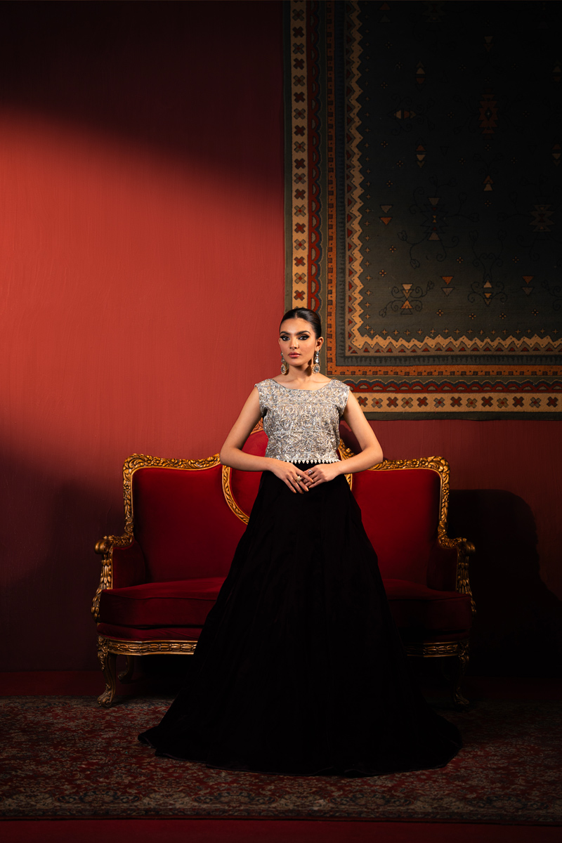 Presenting an exquisite Electric Grey ensemble, a symphony of modern elegance and traditional craftsmanship.